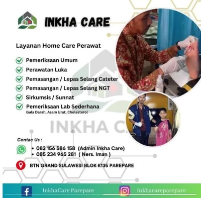 Inkha Care berlokasi di BTN Grand Sulawesi Blok K135 Kota Parepare. Silakan lihat lokasi lengkap layanan home care Inkha Care melalui peta Google Maps berikut.
